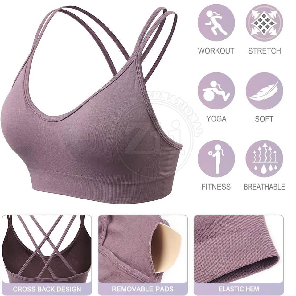 บราโยคะฟิตเนสผู้หญิงดีไซน์ใหม่ ระบายอากาศได้ดี รองรับทรงได้ดี พร้อมโลโก้ด้านหน้า ผลิตจากวัสดุสแปนเด็กซ์/ไนลอน ปรับแต่งได้