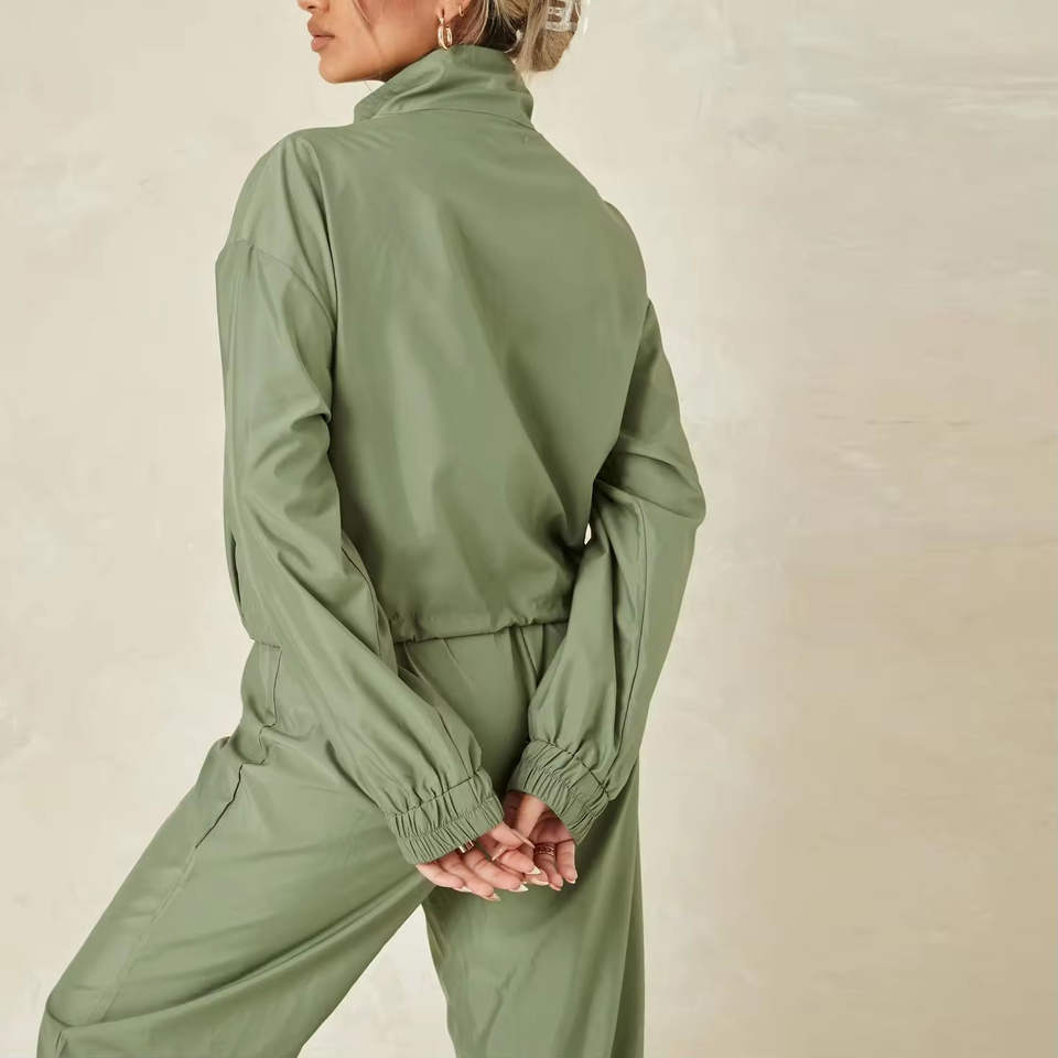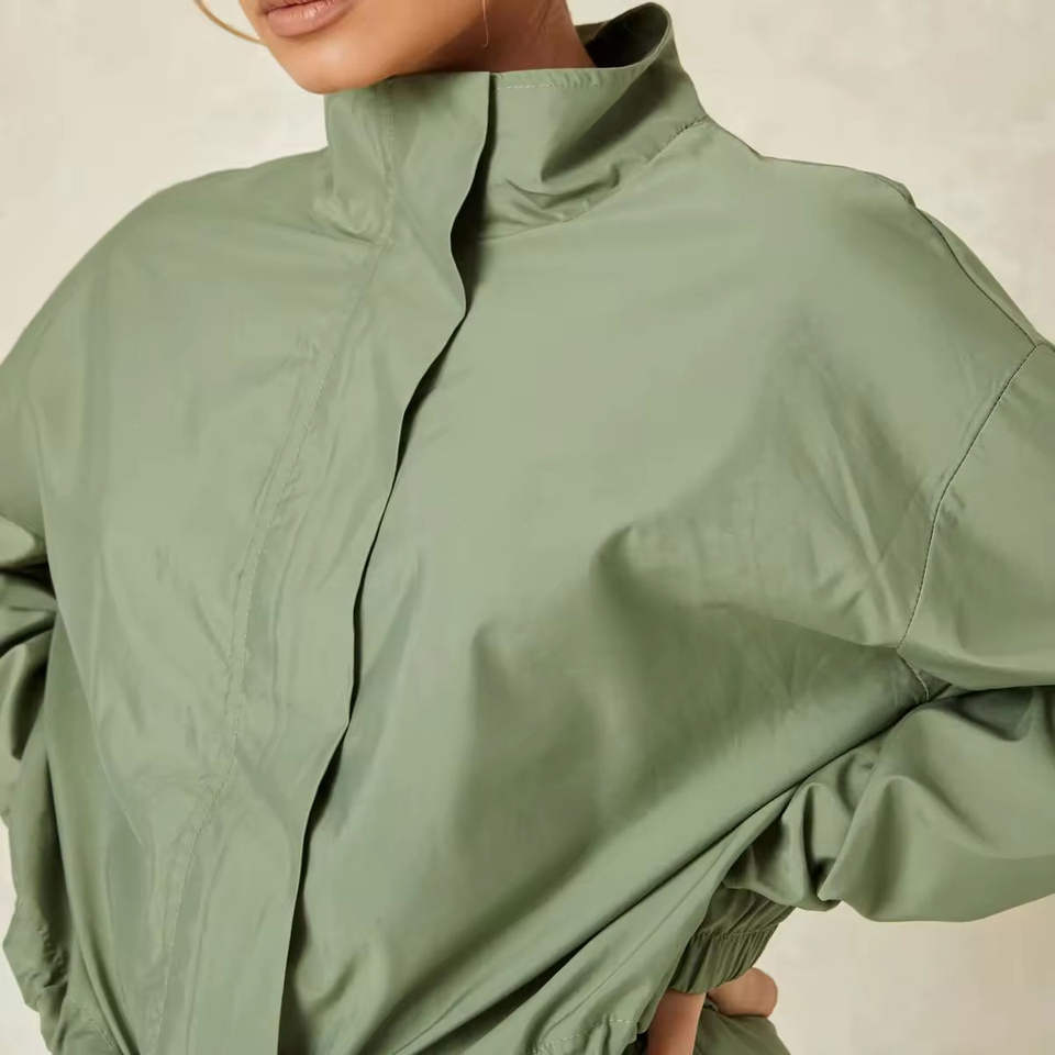 เสื้อแจ็คเก็ตครอปผู้หญิงดีไซน์ใหม่ ระบายอากาศได้ดี ชุดวอร์มกันลม ขายส่ง คุณภาพสูง พิมพ์โลโก้ ชุดกันลมสำหรับผู้หญิงสำหรับกิจกรรมกลางแจ้ง