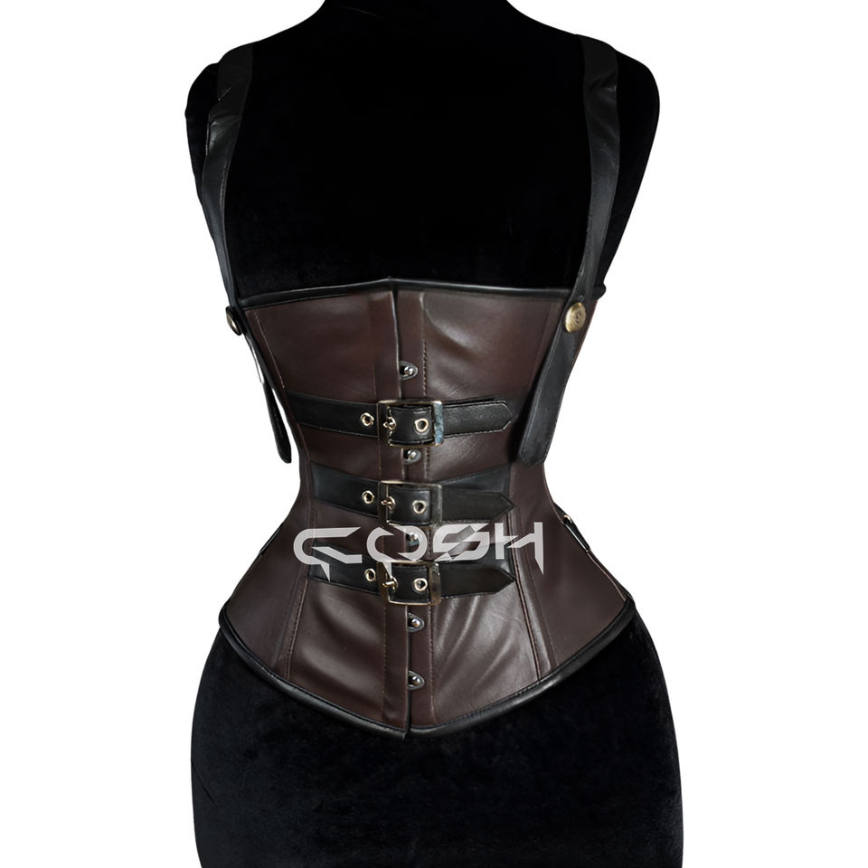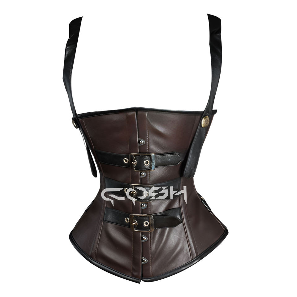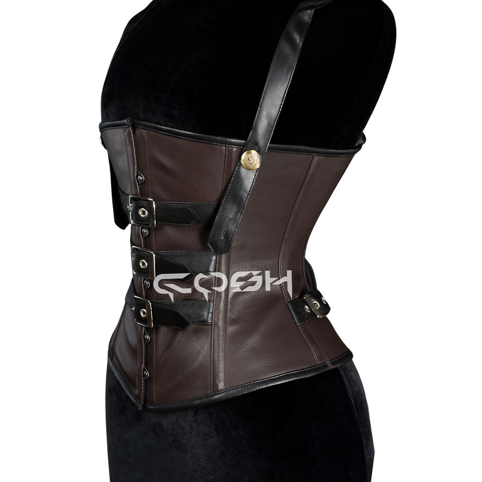 คอร์เซ็ทหนังสีน้ำตาลดีไซน์ใหม่พร้อมหัวเข็มขัดปรับได้และสายสะพายไหล่
