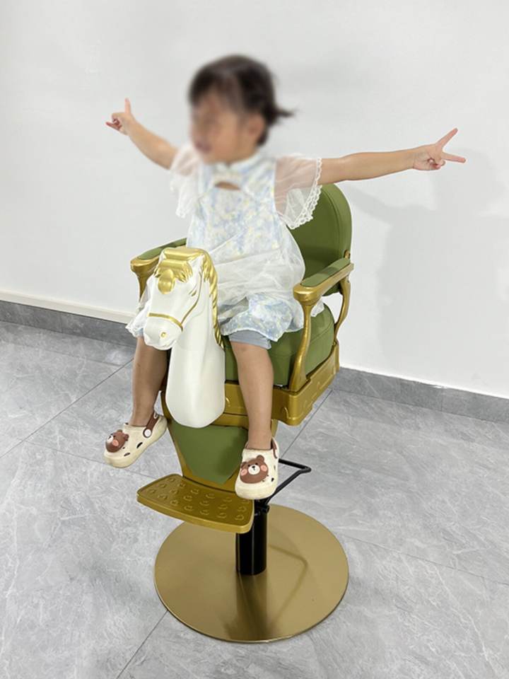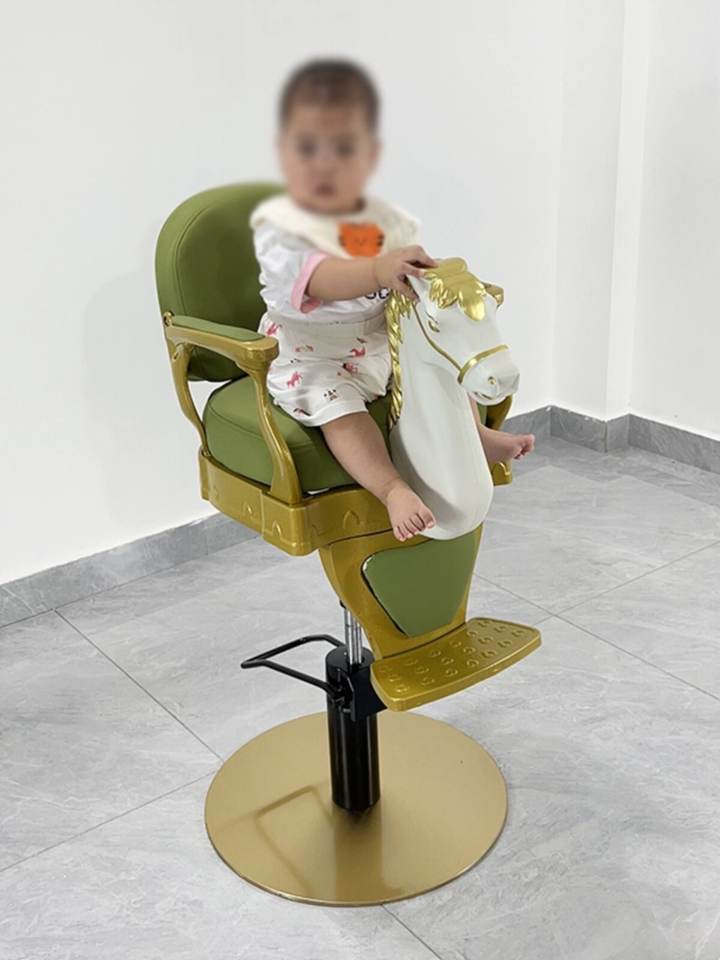 เก้าอี้ตัดผมเด็กแบบโยกปรับได้ ดีไซน์ใหม่ ลายการ์ตูน พร้อมที่พักเท้า วัสดุ PVC สำหรับร้านทำผมและร้านตัดผมชาย