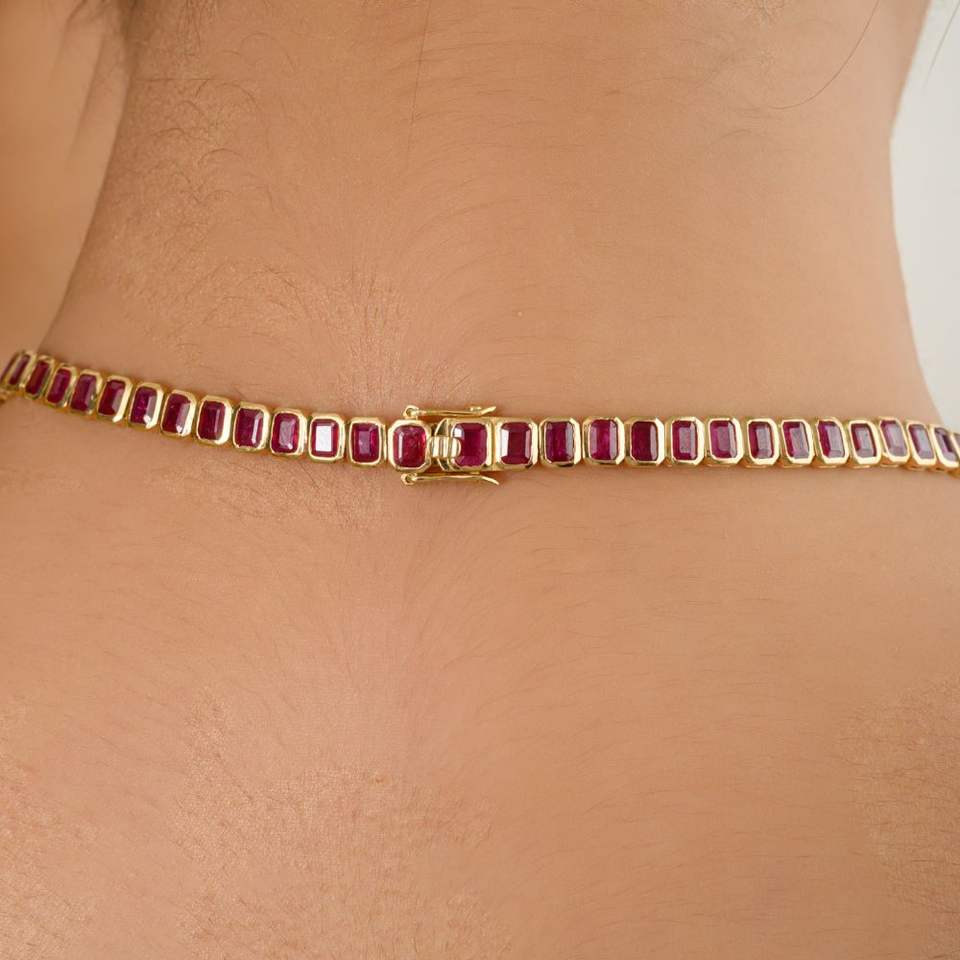 สร้อยคอเทนนิสแบบโชกเกอร์พลอยทับทิมตัดทรงแปดเหลี่ยมธรรมชาติพร้อมทองคำ18K เครื่องประดับคริสต์มาสสำหรับผู้หญิงคอ