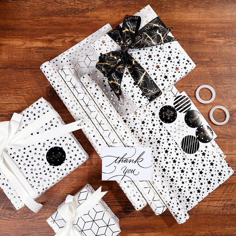 กระดาษห่อของขวัญแบบฟอยล์43*300ซม. ดีไซน์ใหม่กระดาษห่อของขวัญแบบปั๊มร้อนสำหรับเทศกาลคริสต์มาส
