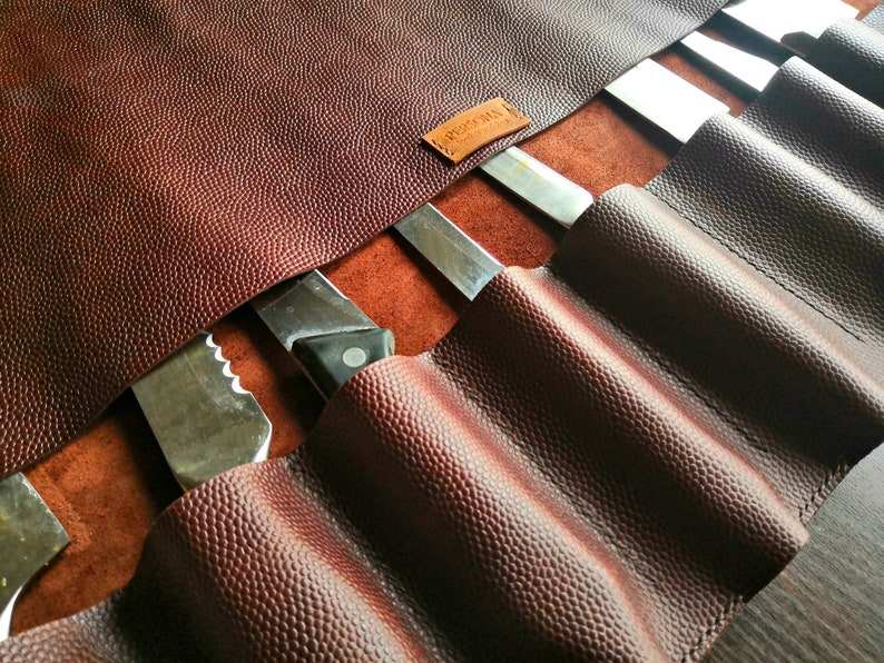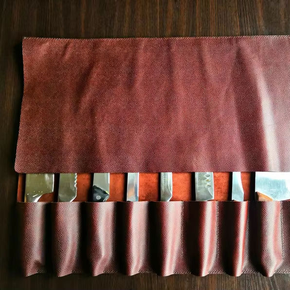 กระเป๋าใส่มีดเชฟแบบม้วนหนังแท้ลายคลาสสิค ดีไซน์ใหม่ รักษาสิ่งแวดล้อม สำหรับมืออาชีพ รุ่น LKR-0262