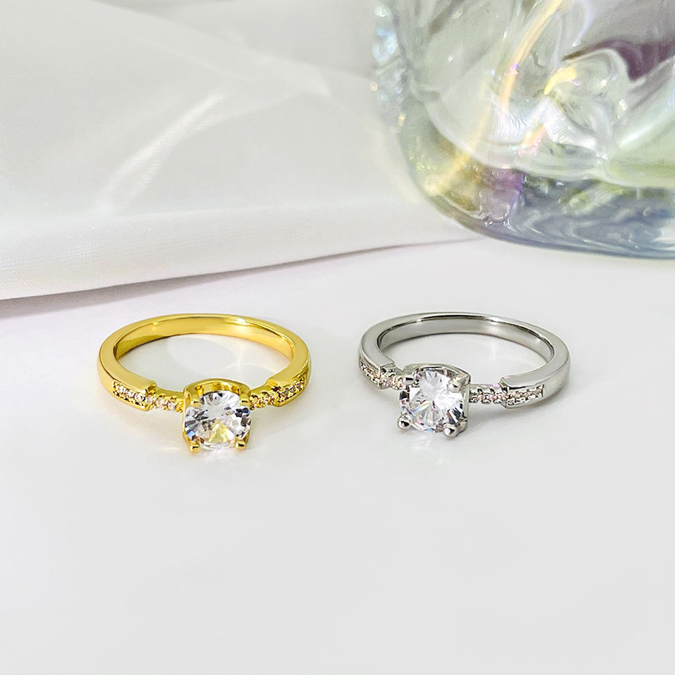 แหวนหมั้นดีไซน์ใหม่คลาสสิก ทองเหลืองชุบทอง 18K ประดับเพชรซิร์คอน สำหรับผู้หญิง