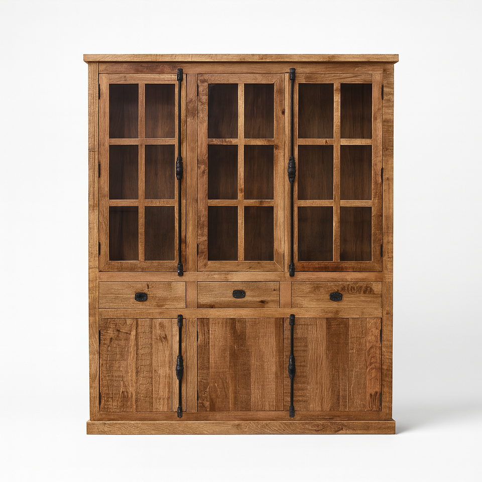 ตู้วิลล่าไม้มะม่วงแบบคลาสสิกพร้อมสไลด์ลิ้นชักสำหรับจัดแสดงในห้องครัวดีไซน์ใหม่