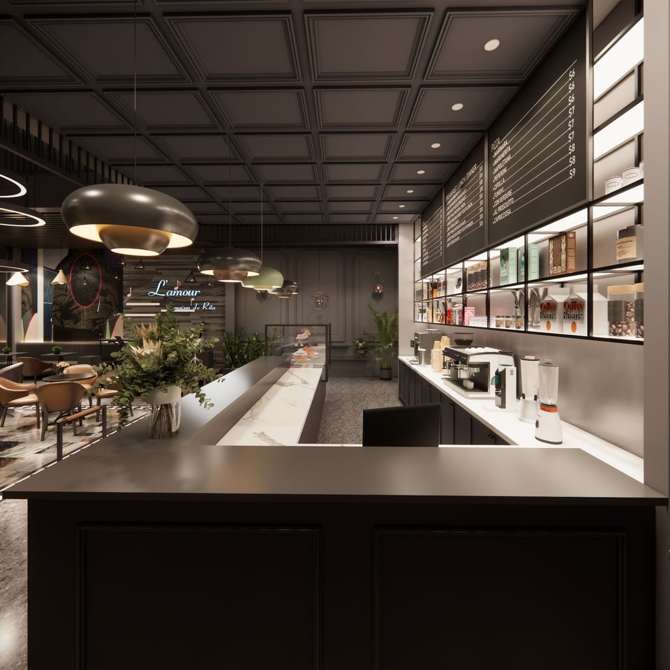 เฟอร์นิเจอร์ตกแต่งผนังร้านกาแฟดีไซน์ใหม่ โต๊ะเคาน์เตอร์ร้านกาแฟดีไซน์หรูหรา ตกแต่งร้านกาแฟบาร์