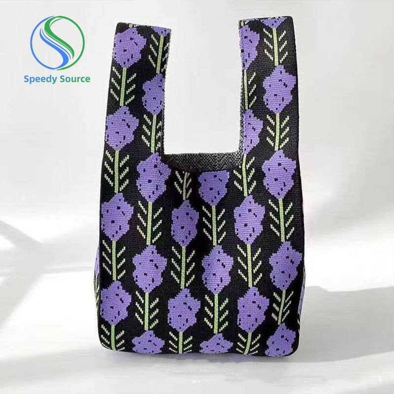 กระเป๋าสะพายไหล่เดี่ยวสีคมชัดขนาดใหญ่ดีไซน์ใหม่กระเป๋าถักโพลีเอสเตอร์ลาเวนเดอร์เกาหลี