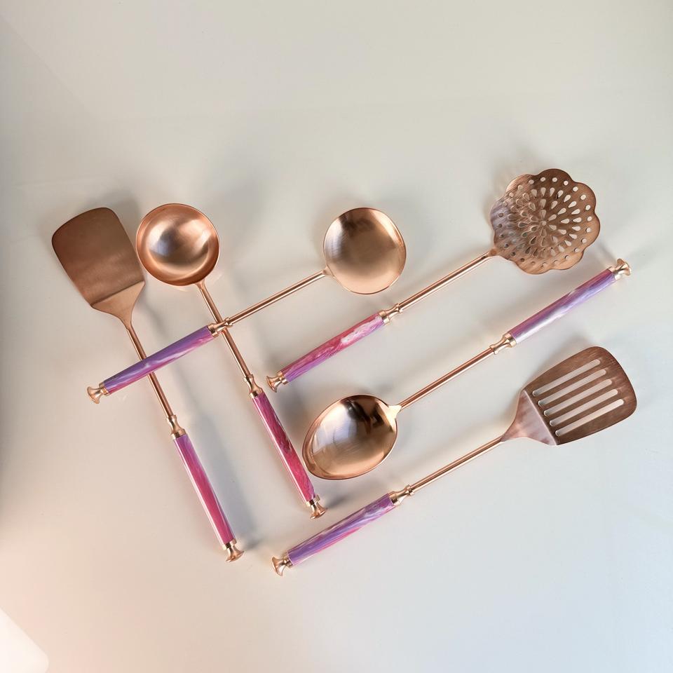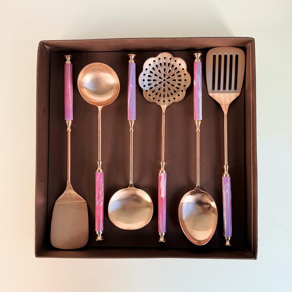 ชุดอุปกรณ์ทำครัวดีไซน์ใหม่ 6 ชิ้น สแตนเลส พร้อมด้ามจับเรซิ่นเคลือบทองแดง สำหรับใช้ในบ้าน ครัว และร้านอาหาร