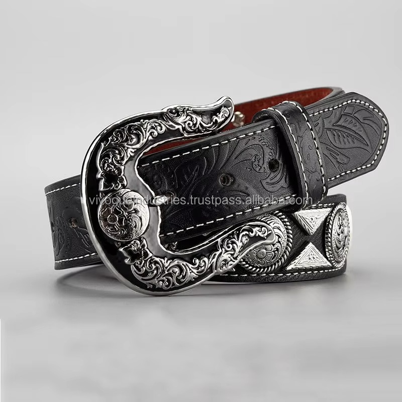 เข็มขัดหนังวัวแท้ ดีไซน์ใหม่ สไตล์วินเทจตะวันตก ทำมือ ลายดอกไม้ หัวเข็มขัดแบบเข็ม ทนทาน ใช้ได้ทั้งชายและหญิง สไตล์ลำลอง