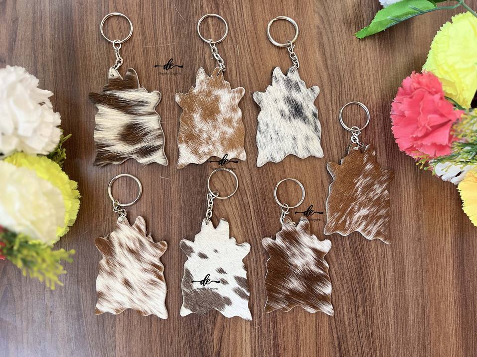 Cowhide Leather Keychain Leopard Cow Print Leather Keyrings Keychains