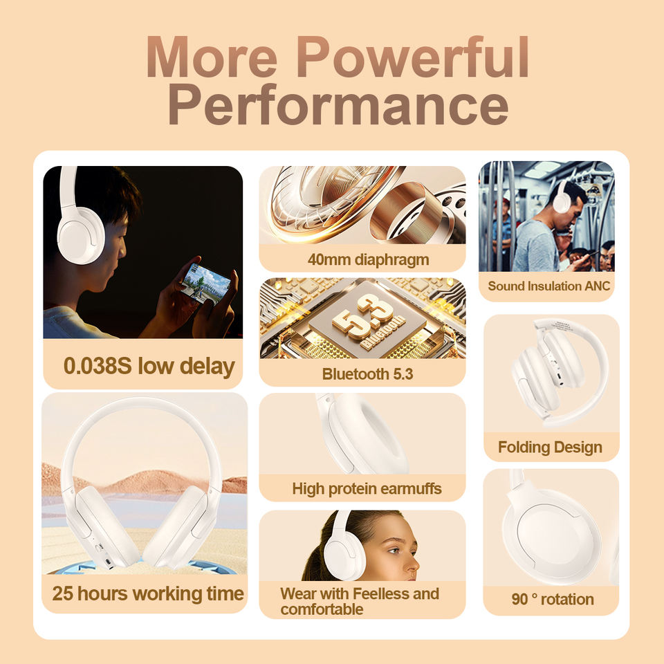 หูฟังไฮบริดแบบไร้สายสำหรับเล่นเกมพับได้มีเสียงรบกวน125ชั่วโมงดีไซน์ใหม่ออกแบบได้ตามต้องการ