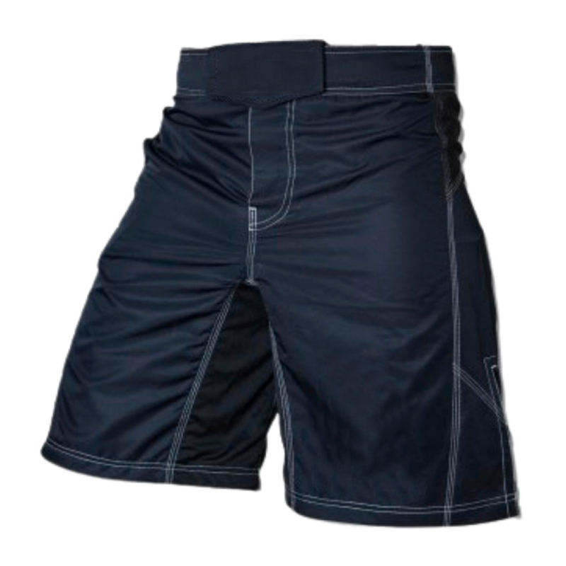 กางเกงว่ายน้ำขาสั้นผู้ชายสีดำมีเชือกปิดและโลโก้ด้านหน้าสำหรับศิลปะการต่อสู้สีดำพิมพ์ลายดิจิตอลออกแบบได้ตามต้องการ
