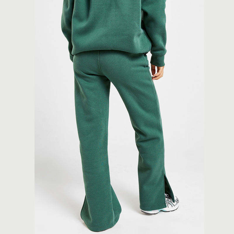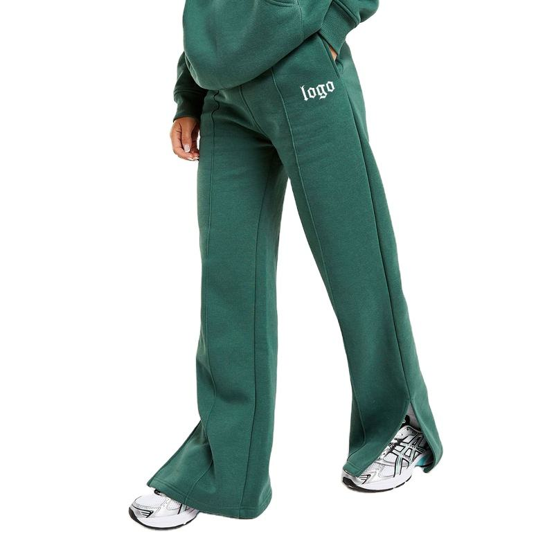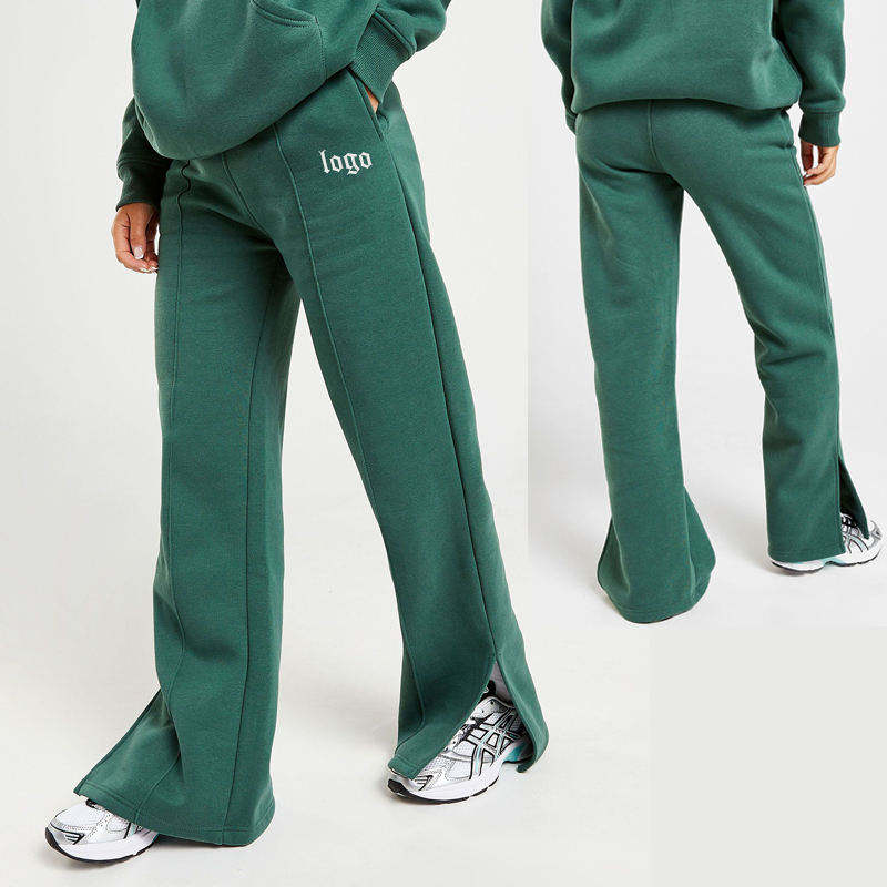 New Design Custom Mid Waist Quick Dry Breathable Cotton Fleece Wide Leg Flare Joggers Split Hem Flared Custom Logo Button Fly