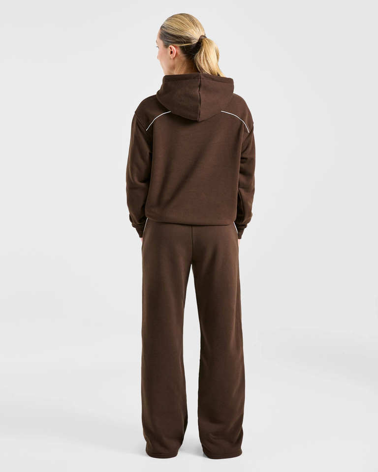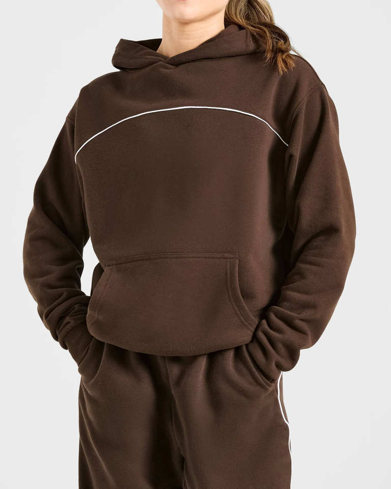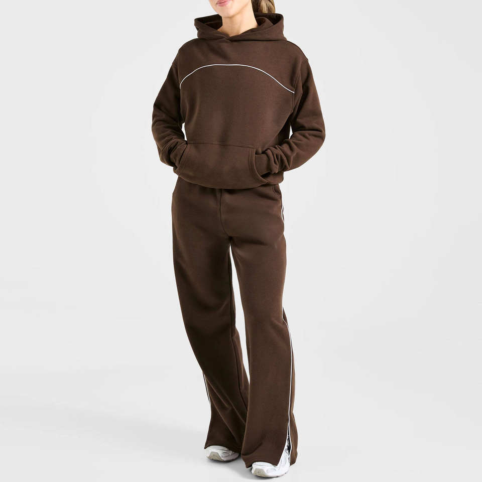 ชุดวอร์มผู้หญิงแบบ 2 ชิ้น ดีไซน์ใหม่ โลโก้แบบกำหนดเอง ลายเมล็ดกาแฟ พร้อมแถบตกแต่ง เสื้อฮู้ดดี้และกางเกงจ็อกเกอร์ ระบายอากาศได้ดี ชุดออกกำลังกาย ชุดลำลอง