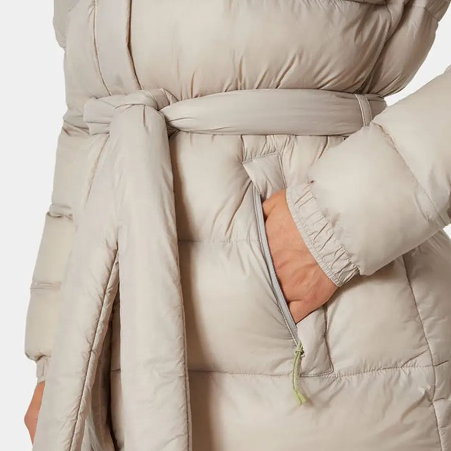 เสื้อพาร์กาผู้หญิงดีไซน์ใหม่สีเทาอ่อนแบบสั่งทำพิเศษ OEM รุ่น Grace ทรงพอง มีฮู้ดปรับได้ ระบายอากาศได้ดี ผลิตจากผ้าฝ้ายบุใยสังเคราะห์แบบควิลท์ เหมาะสำหรับฤดูหนาว