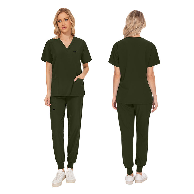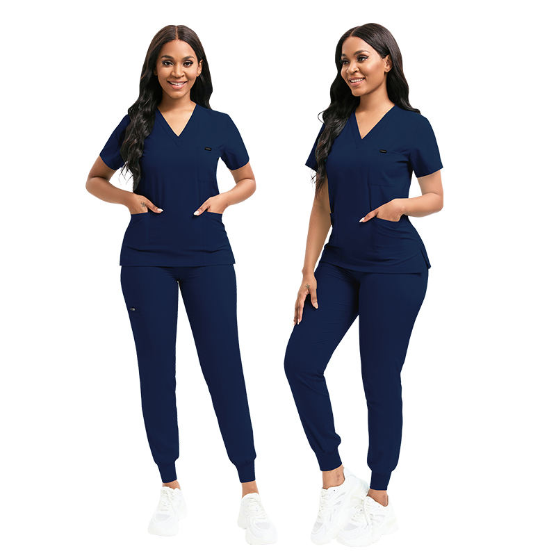 ชุดจ็อกเกอร์ผ้าโพลีเอสเตอร์ชุดพยาบาลชุดพยาบาลผ้าสแปนเด็กซ์สำหรับนักเรียนทางการแพทย์แบบยืดได้บริการออกแบบใหม่