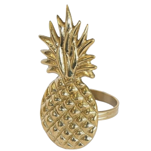ห่วงใส่ผ้าเช็ดปากทำจากโลหะสีทองรูปสับปะรดดีไซน์ใหม่เป็นมิตรต่อสิ่งแวดล้อมของตกแต่งโต๊ะสำหรับโรงแรมที่รับประทานอาหาร