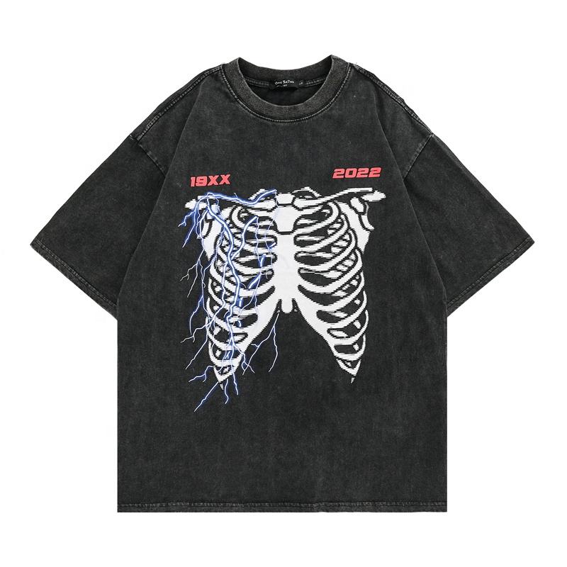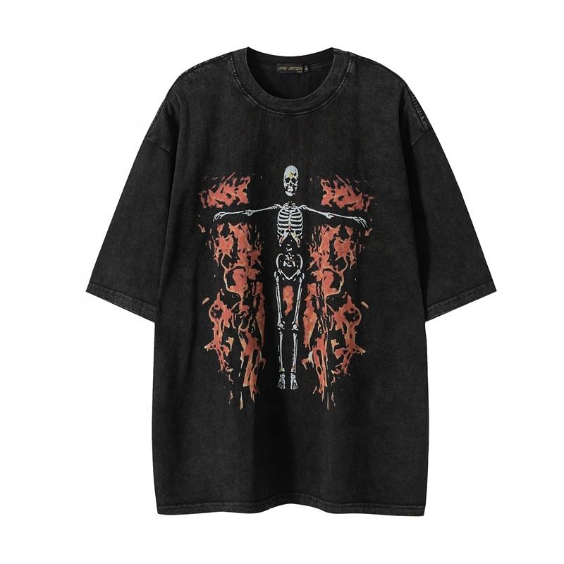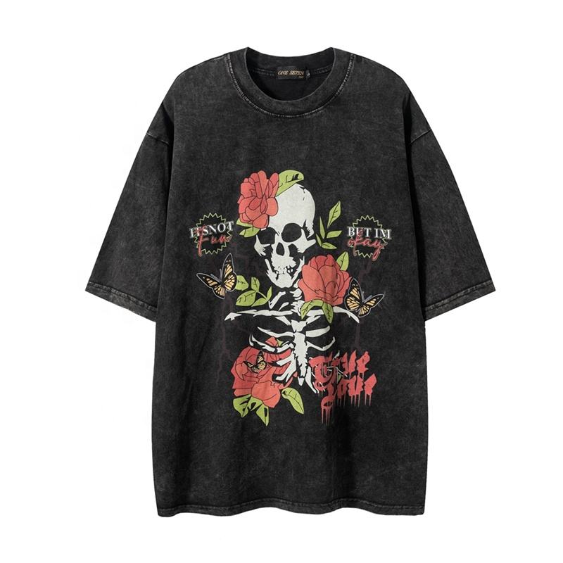 เสื้อยืดลายหัวกะโหลกแบบใหม่ สไตล์วินเทจ ล้างสี สำหรับผู้ชายและผู้หญิง ผ้าฝ้าย 100% แฟชั่นสตรีทแวร์ แขนสั้น