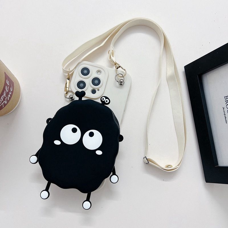 กระเป๋าเงินทรงลูกบอลถ่านหินสีดำน่ารักดีไซน์ใหม่กระเป๋าสตางค์พร้อมสายคล้องเคสโทรศัพท์สำหรับ OPPO A79 A98 A78 A77 5G A38 F23 F21 Pro Reno 8T 8Z