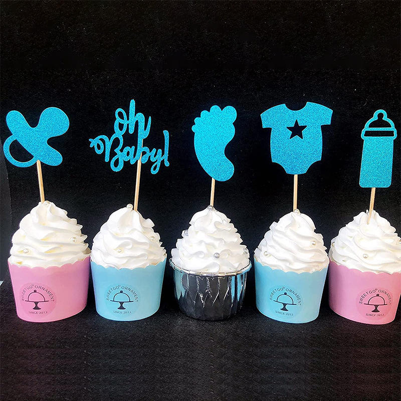 ท็อปเปอร์เค้กน่ารักดีไซน์ใหม่ รูปเท้าและชุดเด็ก สำหรับตกแต่งคัพเค้กในงานเลี้ยงฉลองทารก สำหรับเด็กชายและเด็กหญิง