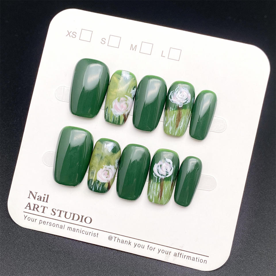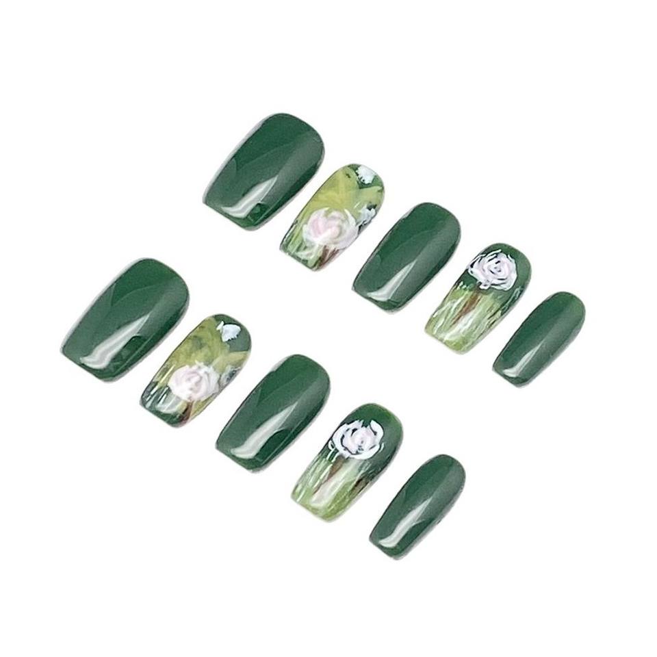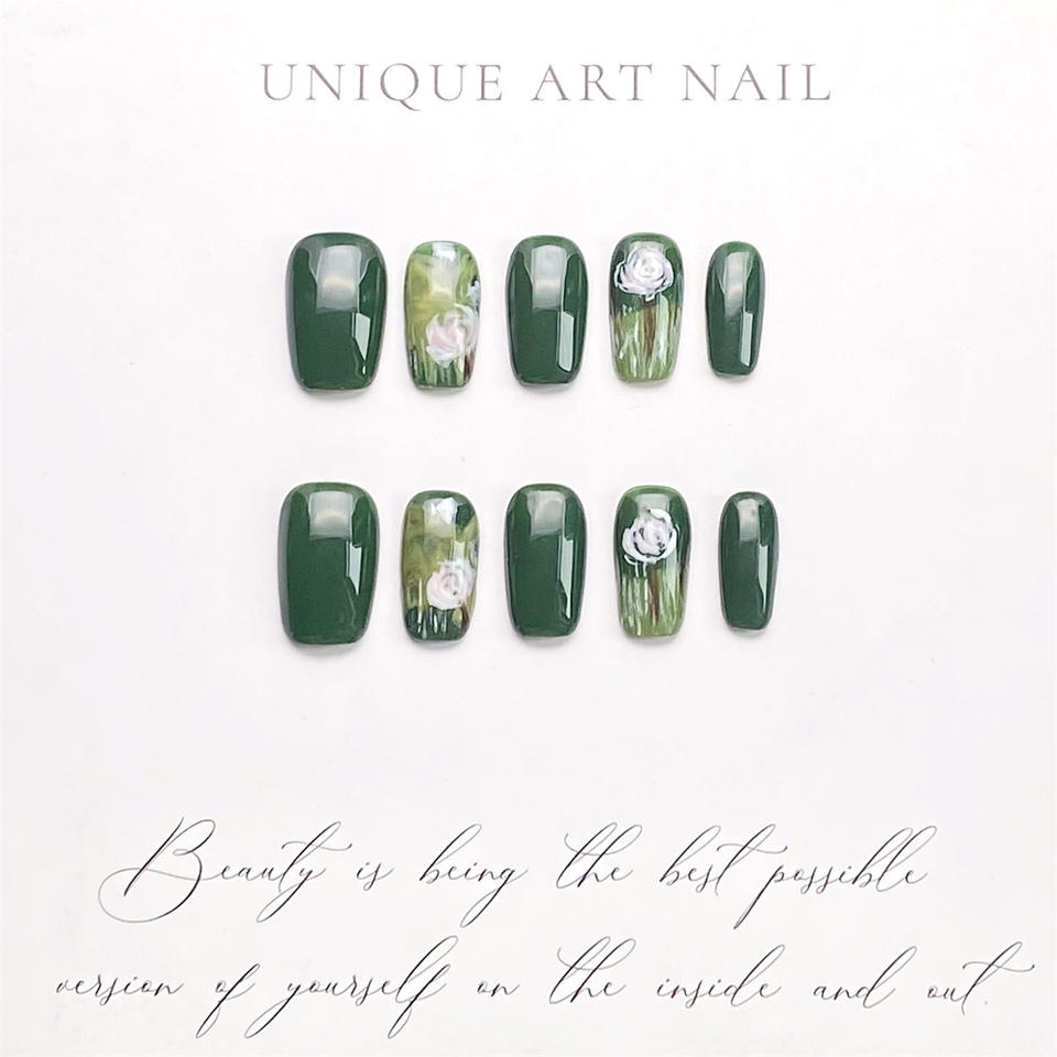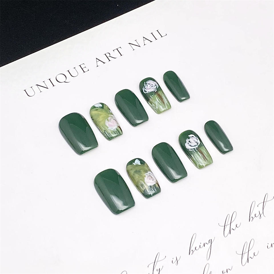 เล็บปลอมอะคริลิคแบบยาวทรงโลงศพ สีเขียวเข้มลายตาแมว ดีไซน์ใหม่ ทำมืออย่างมีประสิทธิภาพ 10 ชิ้น ติดง่าย