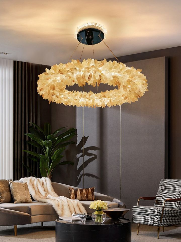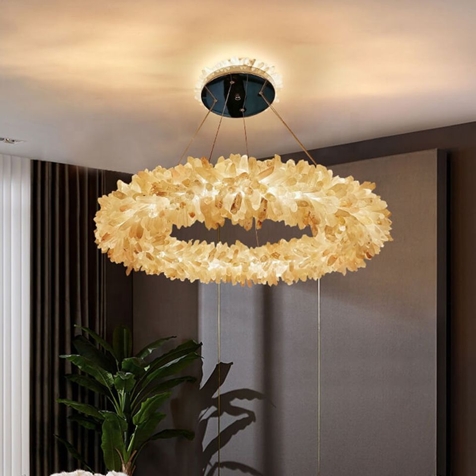 โคมไฟระย้าหินธรรมชาติทำจากคริสตัลหรูหราสไตล์นอร์ดิกสำหรับตกแต่งห้องนั่งเล่นห้องอาหารดีไซน์ใหม่