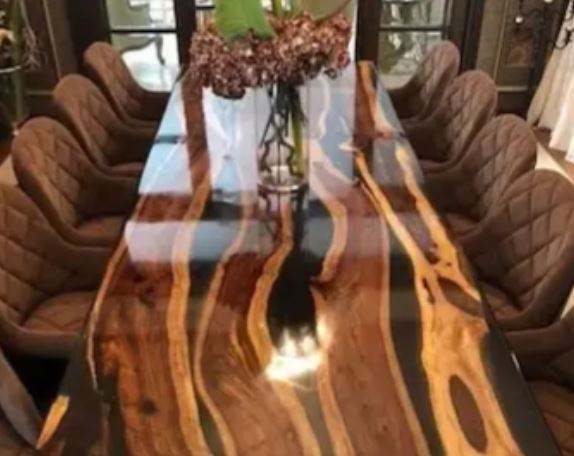 New Design Decorative Wallnut Wooden Table Top With Black Epoxy Resin Work Custom Made Dining Table Top for Sale