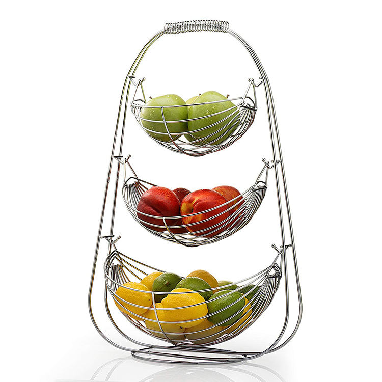 ตะกร้าโลหะสำหรับเก็บผักเครื่องครัวทำจากเหล็กพร้อมเสิร์ฟผลไม้ดีไซน์ใหม่
