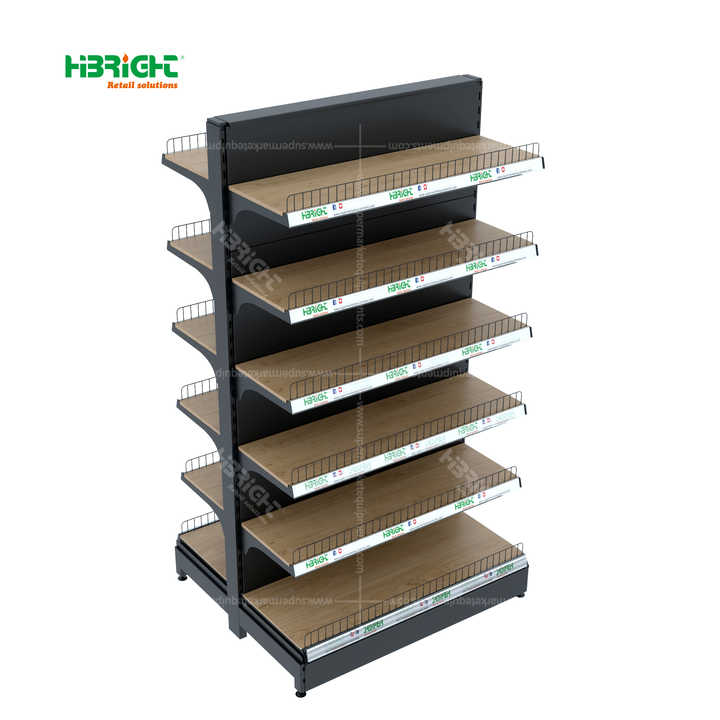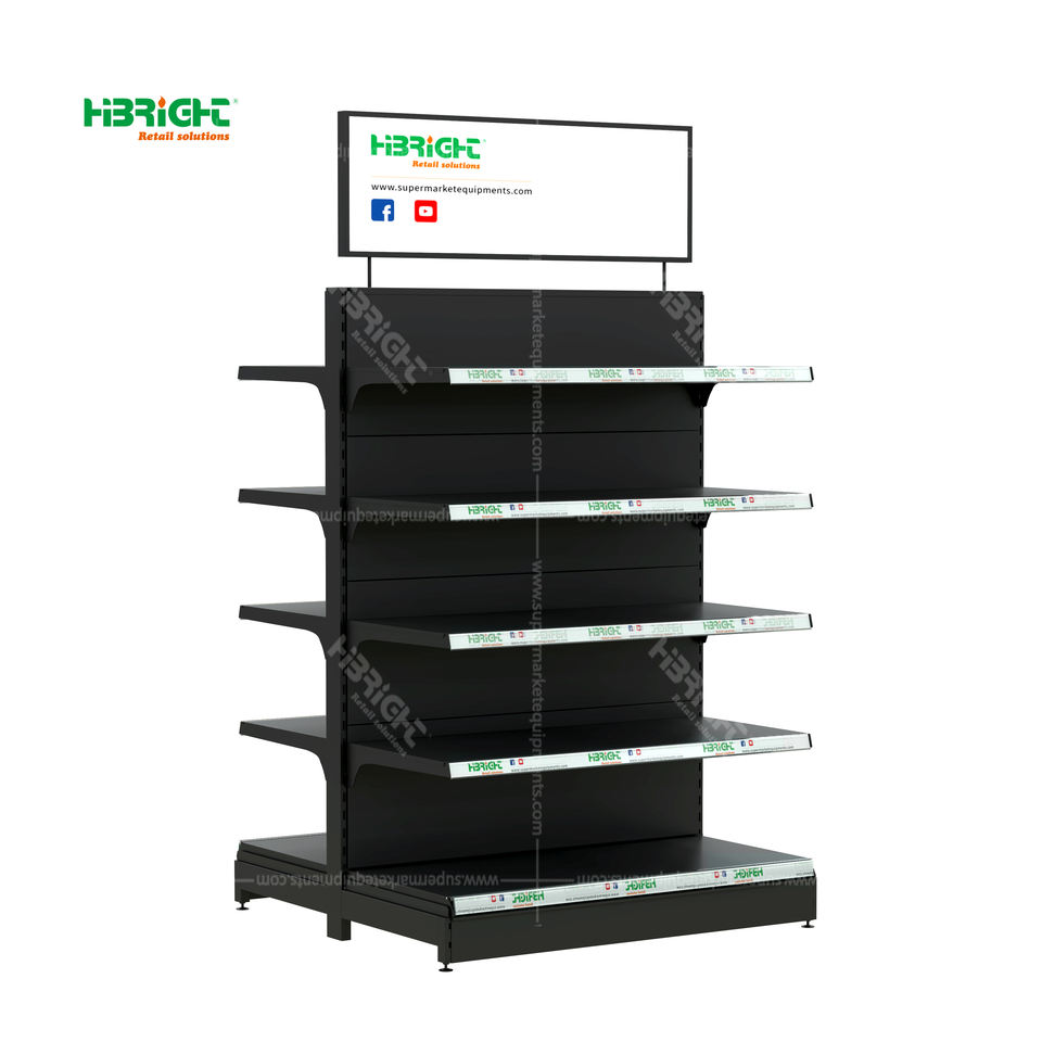 ชั้นวางสินค้าซุปเปอร์มาร์เก็ตแบบโลหะสองด้าน ดีไซน์ใหม่ แข็งแรงทนทาน ขนาดสั่งทำได้ สีขาว/ดำ สำหรับโฆษณาขนม