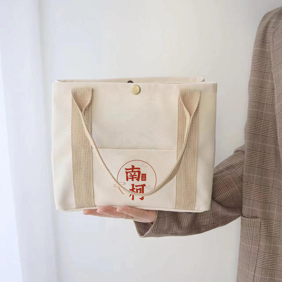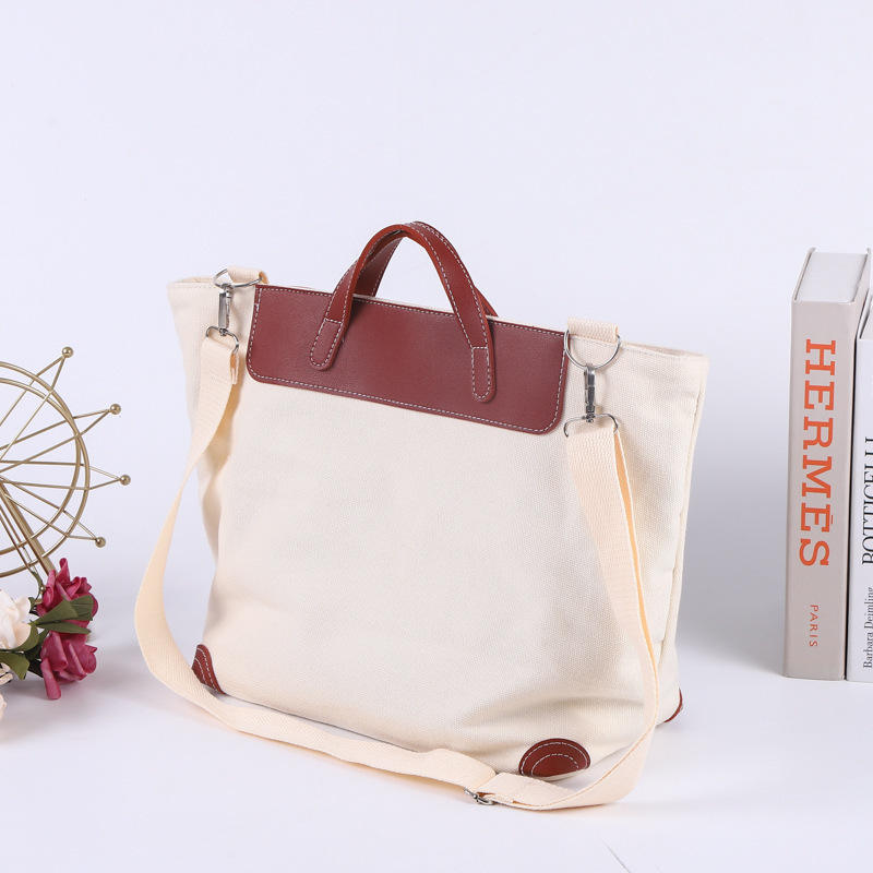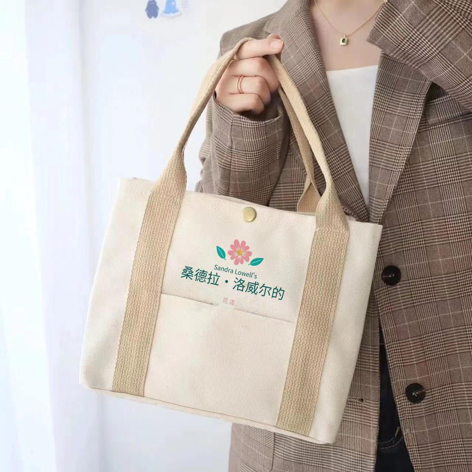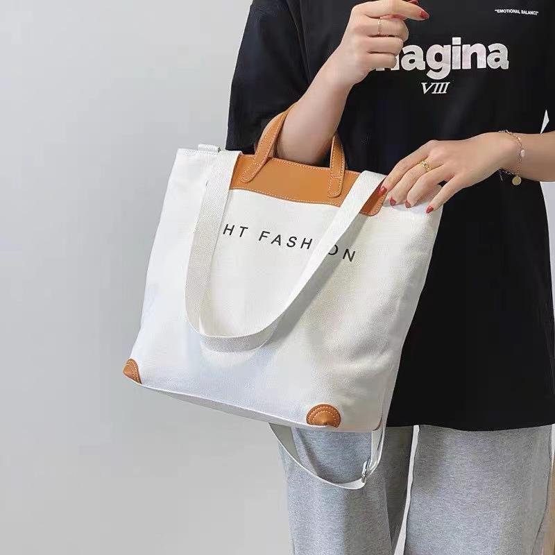 การออกแบบใหม่ที่จับหนังขนาดใหญ่ Eco ปรับแต่งกระเป๋าผ้าแคนวาสผ้าฝ้ายขนาดใหญ่พิมพ์ซิปพร้อมโลโก้ที่กําหนดเอง