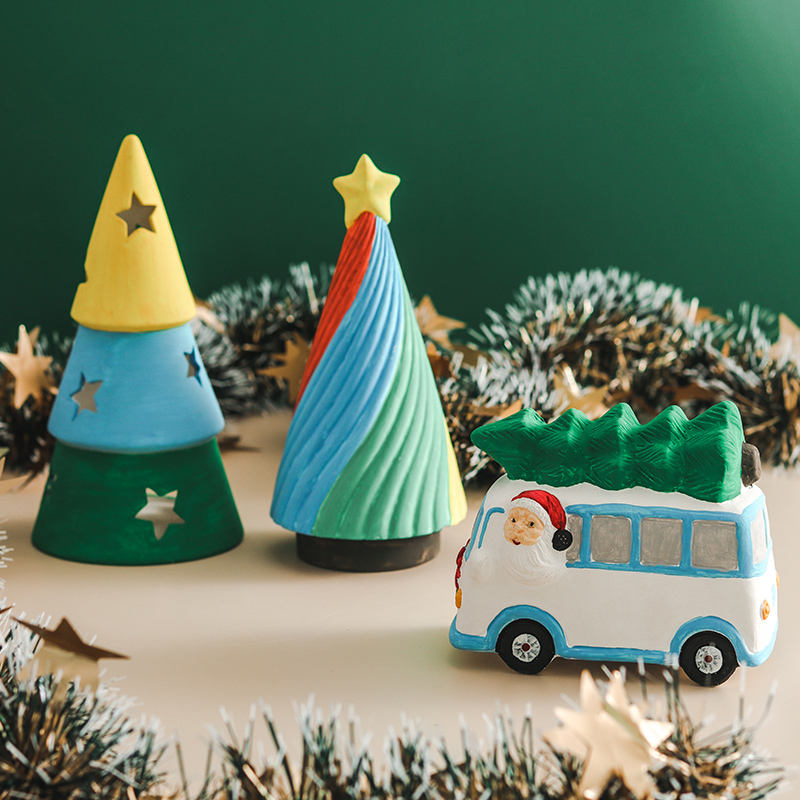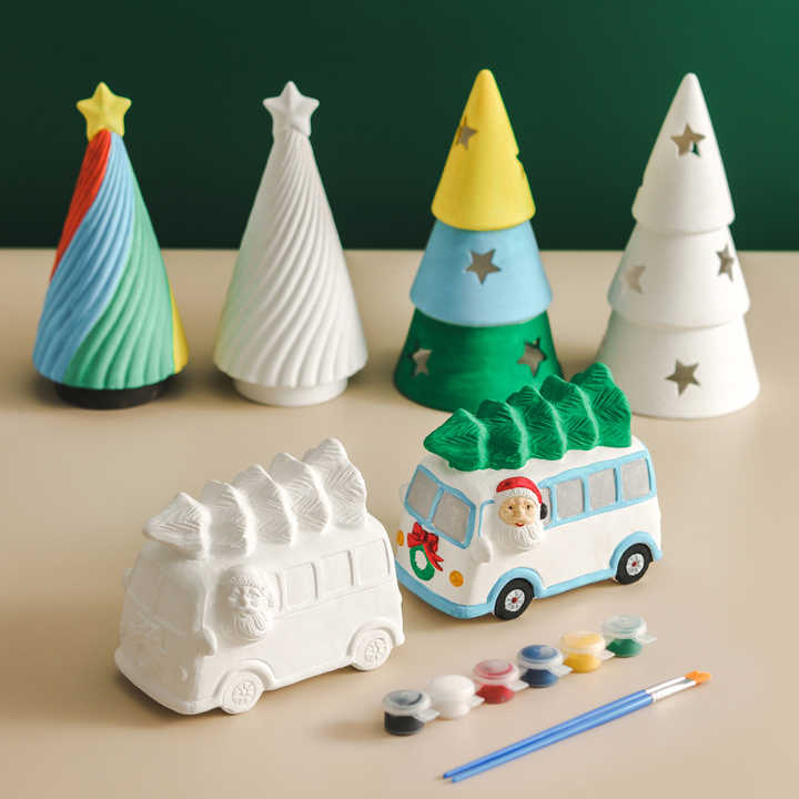 ชุดอุปกรณ์วาดภาพเพื่อการศึกษาของเล่นเซรามิกสำหรับรถยนต์ต้นคริสต์มาสงานฝีมือ DIY