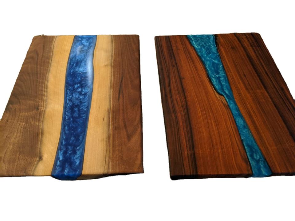 เขียงไม้มะกอกเรซิ่นอีพ็อกซี่ทำมือสุดหรู ยี่ห้อโกลเด้นเทอร์ร่า ไม้มะกอกธรรมชาติหลากสี ใช้ได้หลากหลายในครัว