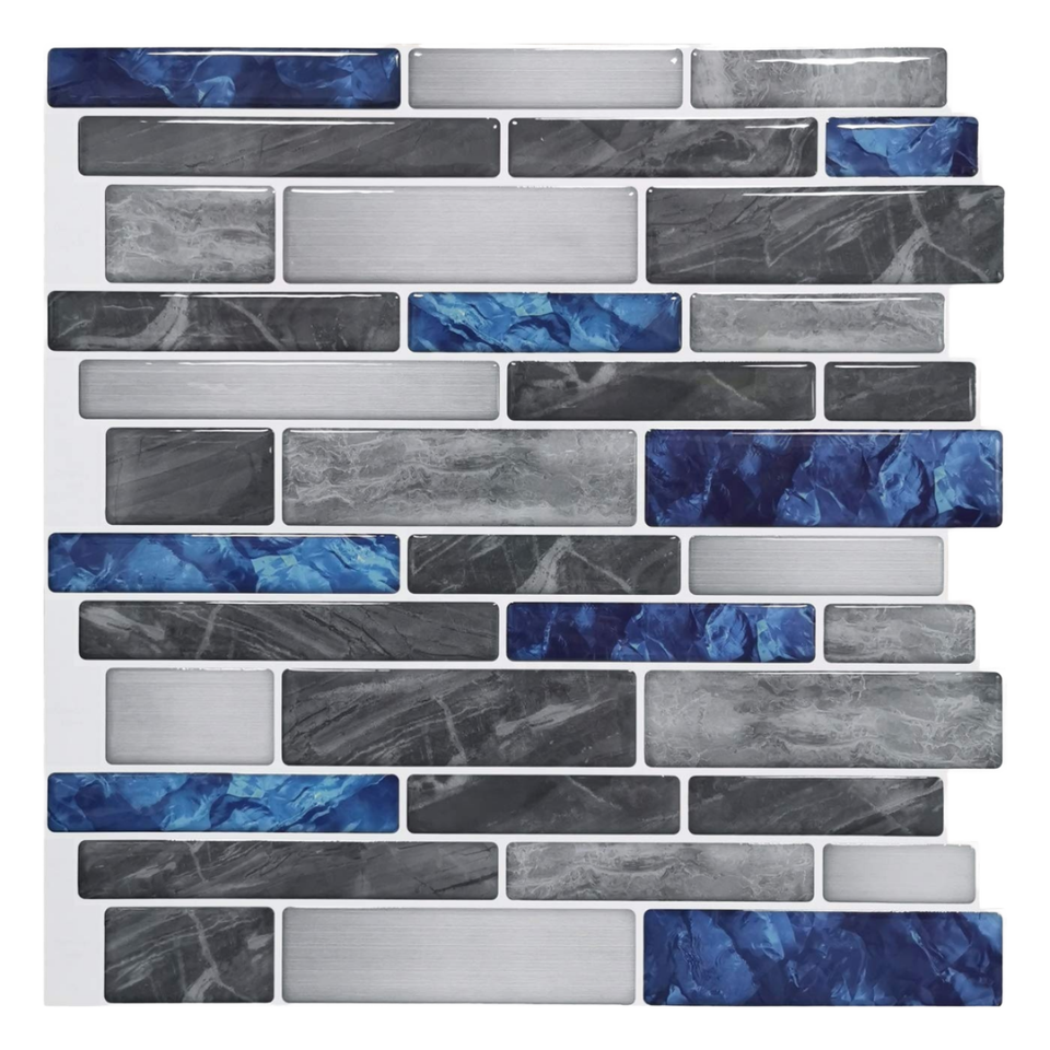 กระเบื้องโมเสคหินอ่อนสีเทาลายคลื่นยุโรปดีไซน์ใหม่สำหรับตกแต่งผนังภายใน กระเบื้องโมเสคโลหะสีน้ำเงินกรมท่า