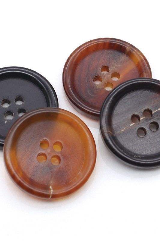 กระดุมชุดสูท 4 รู ทำจากเขาควาย งานแกะสลักลายโบราณ สีน้ำตาล ดีไซน์ใหม่ ทนทาน เย็บมือ งานฝีมือคุณภาพ