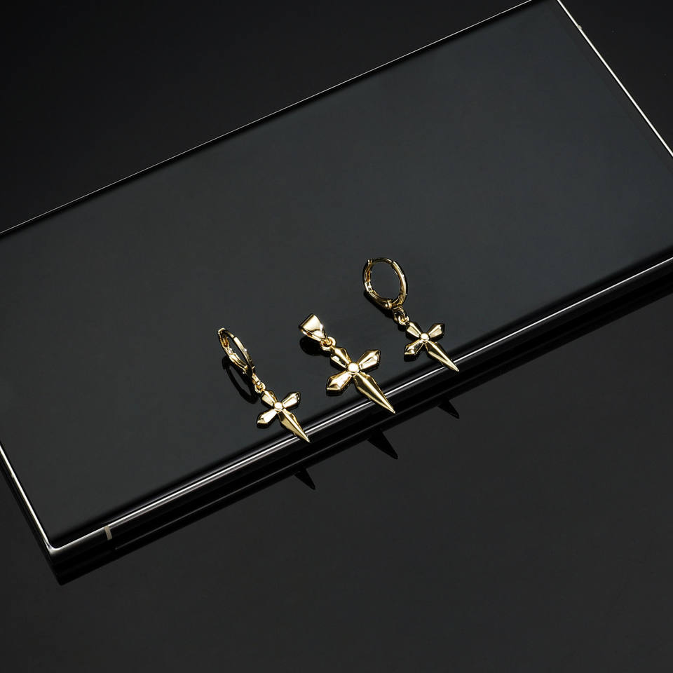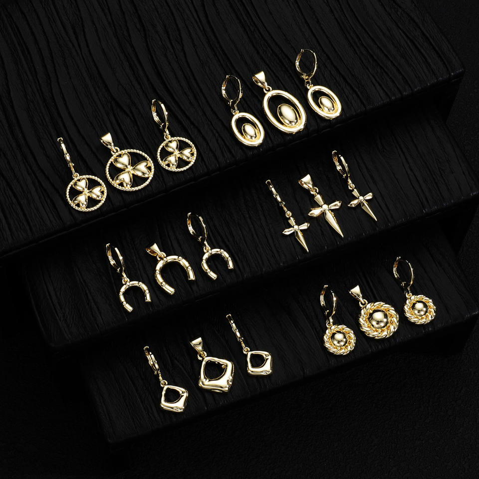 ต่างหูแฟชั่นดีไซน์ใหม่ ชุบทอง สำหรับผู้หญิงและเด็กผู้หญิง รูปทรงกากบาท โคลเวอร์ หัวใจ แบบห่วง ขายส่งราคาถูก