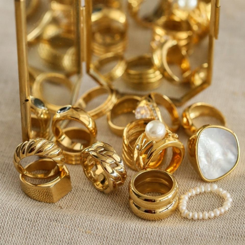 แหวนแฟชั่นดีไซน์ใหม่ ขายส่ง หลายขนาด หลายสไตล์ ชุบทอง 18K แหวนสแตนเลสสตีลสำหรับผู้หญิง แหวนมุกเรียบง่ายสำหรับสาวๆ