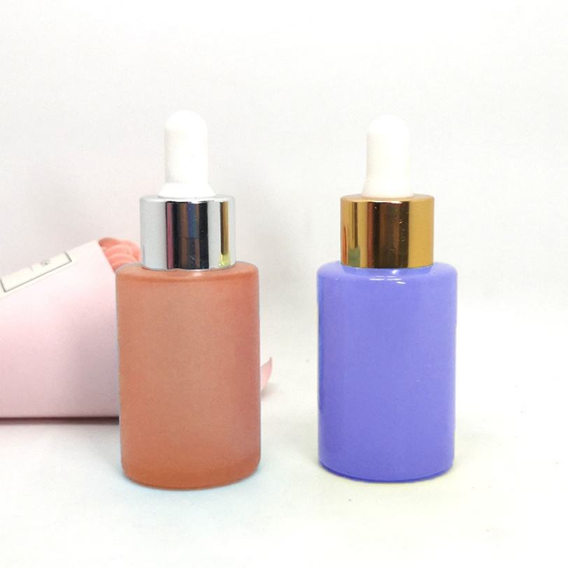 ขวดแก้วเซรั่ม/น้ำมันเครื่องสำอางแบบใหม่ ดีไซน์ไหล่เรียบ ขนาด 30 มล. 50 มล. 60 มล. สีดำด้าน พร้อมหัวปั๊มกดแบบกดปุ่ม