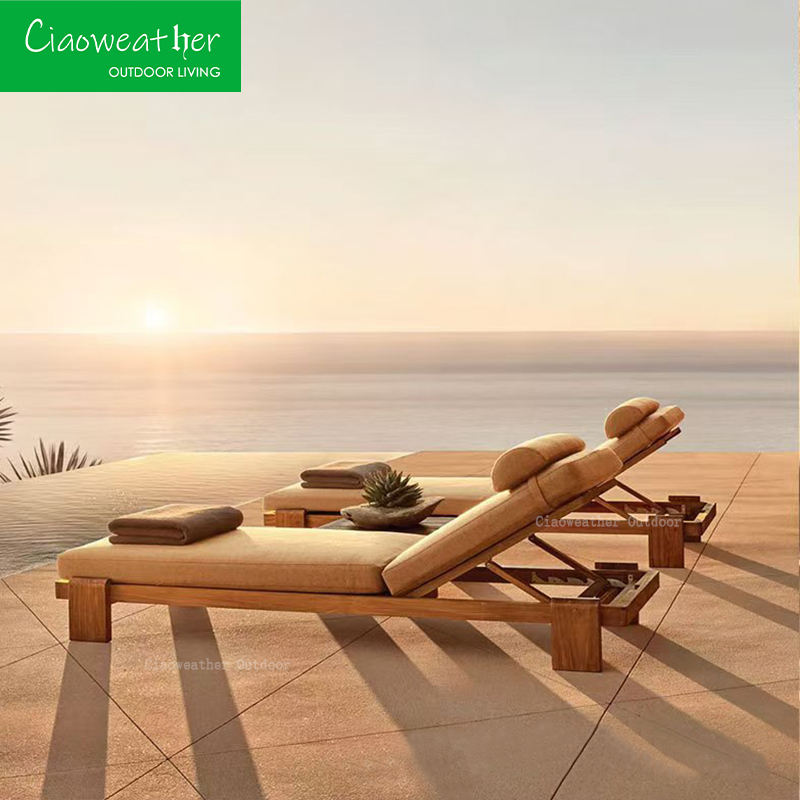 New Design Furniture Outdoor Garden Villa Resort Lying Bed Sunshine Beach Swimming Pool Lying Chair Teak Sunlight Bath Bed Set
