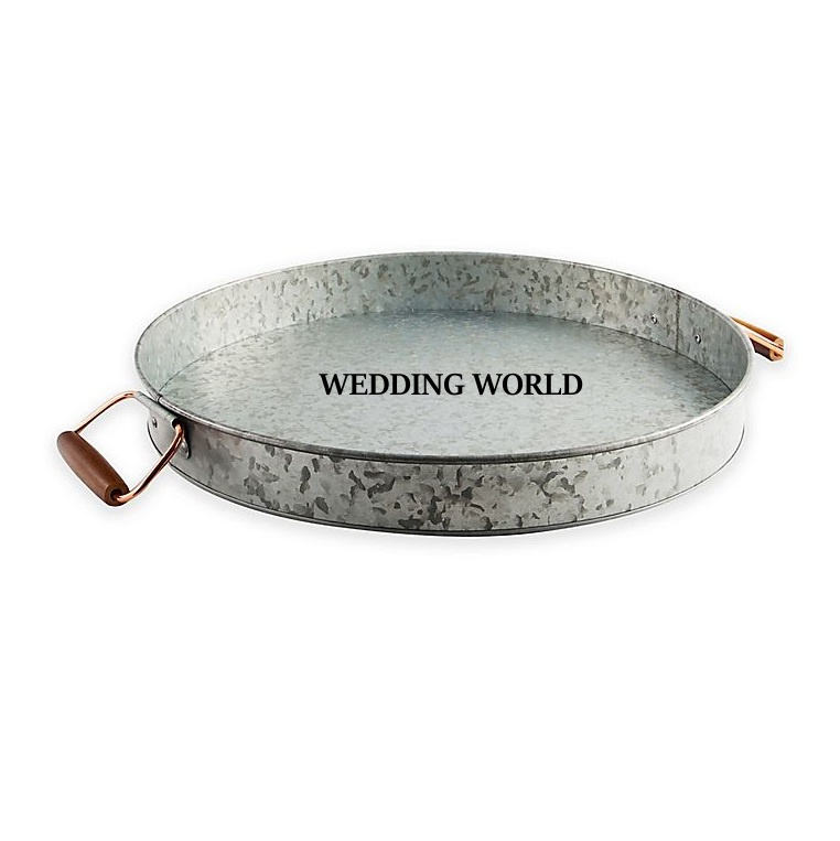 ถาดเสิร์ฟโลหะชุบสังกะสีดีไซน์ใหม่ถาดเสิร์ฟทรงกลมทำด้วยมือของนักออกแบบที่ขายดีที่สุด