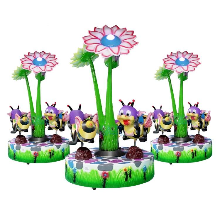 เครื่องเล่นม้าหมุนไฟฟ้าสำหรับเด็กเครื่องเล่นเกมรูปสัตว์และดอกไม้ดีไซน์ใหม่