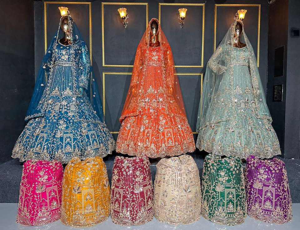 ชุดเลเฮนกาโชลีดีไซน์ใหม่ พร้อมงานปักมืออย่างประณีตและประดับด้วยหินจาร์กันระยิบระยับ เหมาะสำหรับงานแต่งงาน