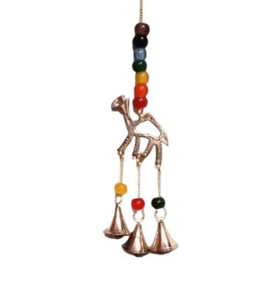 ระฆังกระดิ่งรูปอูฐทำจากทองเหลืองพร้อมลูกปัดและกระดิ่งทองเหลืองสามอันทำมือสำหรับแขวนตกแต่งดีไซน์ใหม่