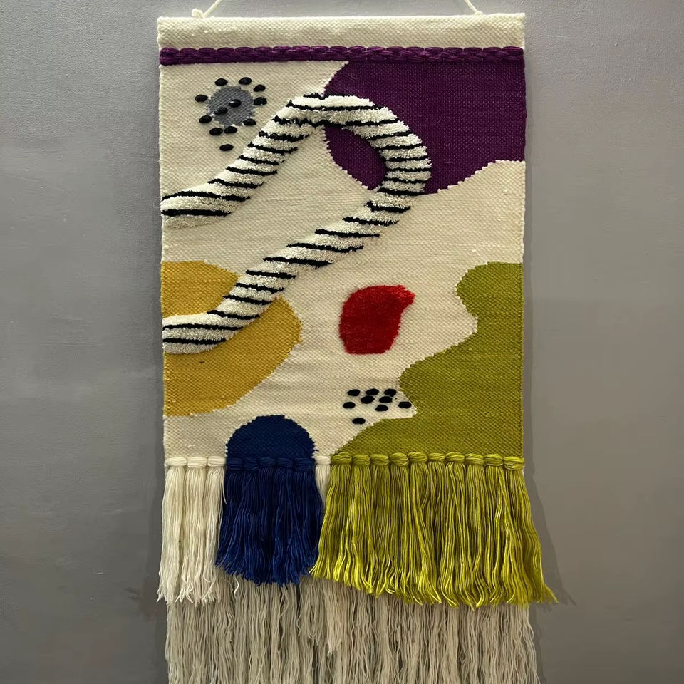 พรมแขวนผนังลายนามธรรมถักมือแบบใหม่ | ผ้าแขวนผนังมาคราเม่ทอมือ งานแฮนด์เมด สไตล์โมเดิร์นโบโฮ -40
