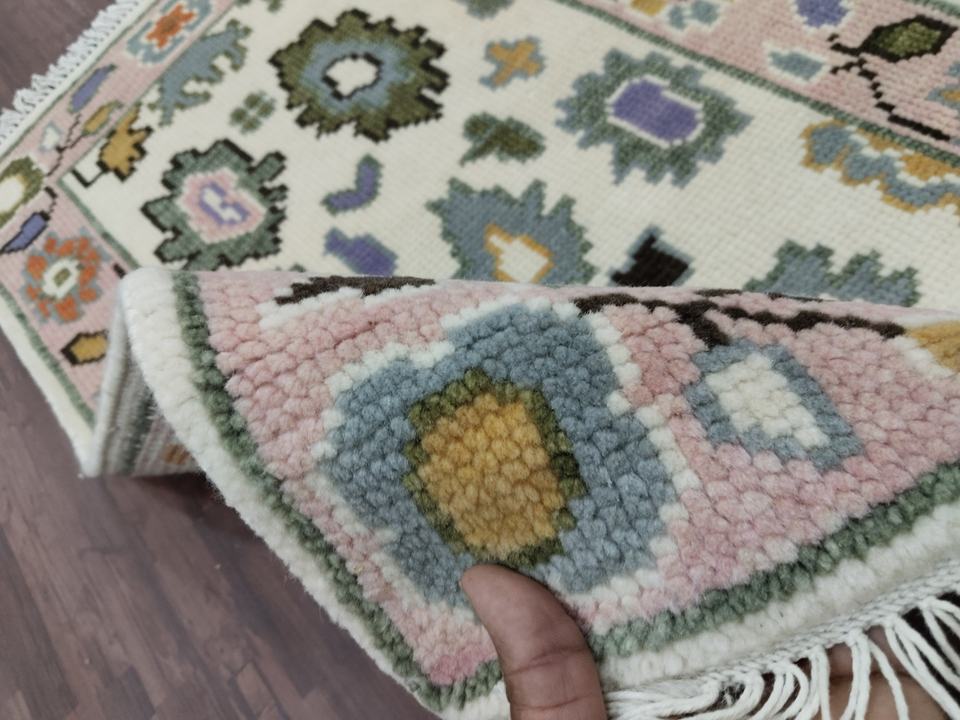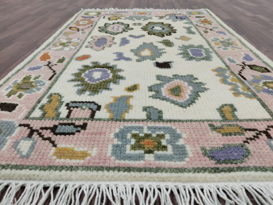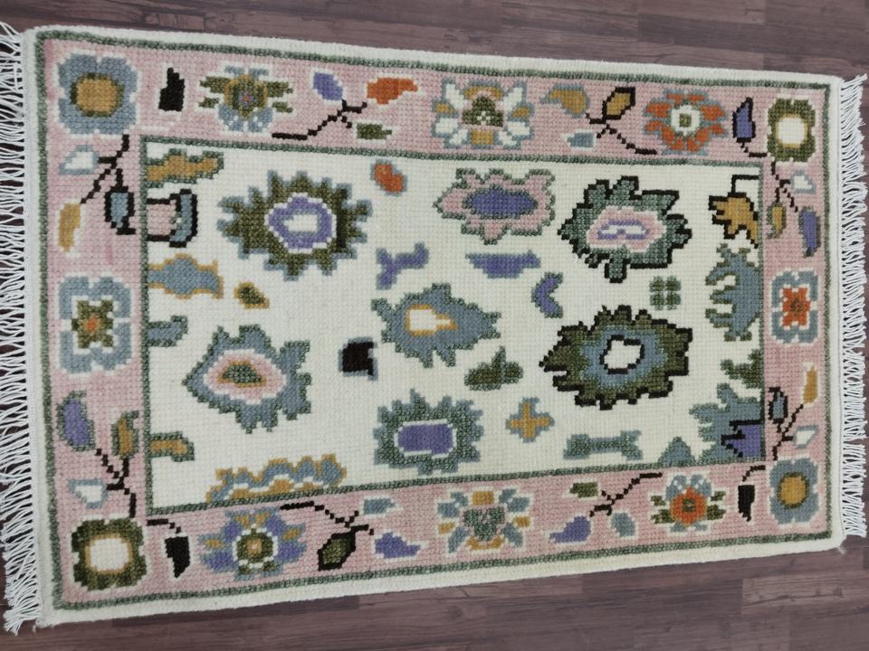 พรมปูพื้นลายดอกไม้สีชมพูถักมือแบบใหม่ | พรมทำมือจากขนสัตว์ขนาดเล็ก แรงบันดาลใจจากอูชาค | พรมตกแต่งห้องนั่งเล่นสไตล์วินเทจ