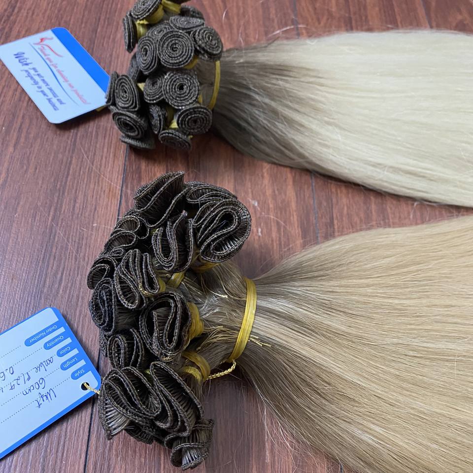 ผมปลอมแบบมัดมือสำหรับต่อผมไม่คืนผมแบบบางน้ำหนักเบานุ่มไม่บุบสลาย
