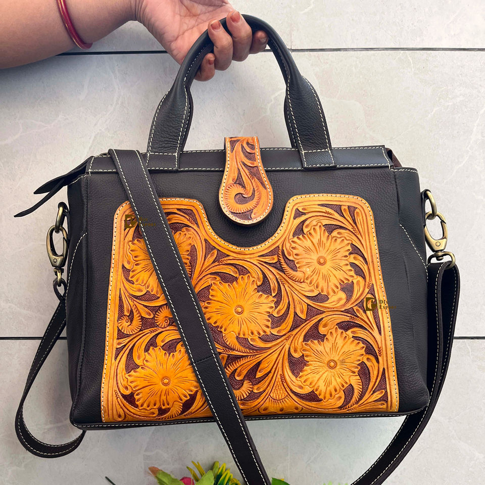 ชื่อสินค้า:กระเป๋าถือหนังแกะสลักด้วยมืออย่างมีสไตล์