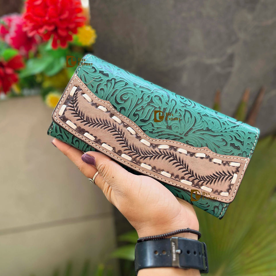 กระเป๋าถือคลัทช์หนังแกะด้วยมือดีไซน์ใหม่ประดับดอกไม้กันน้ำหลากสีเทอร์ควอยซ์ที่ทันสมัย