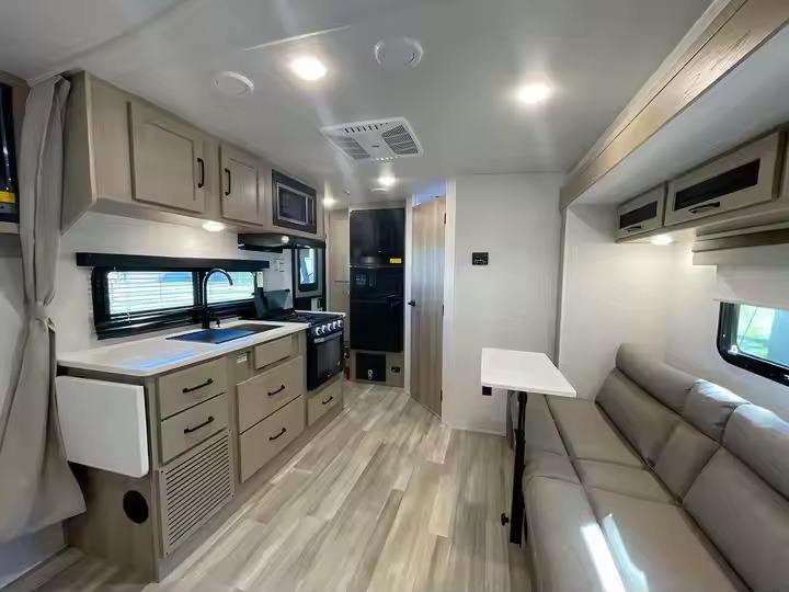 รถพ่วงทรงหยดน้ำดีไซน์ใหม่ ระดับไฮเอนด์ ทันสมัย สีโรสสแตนเลส รองรับผู้โดยสาร 6 คน นอนสบาย