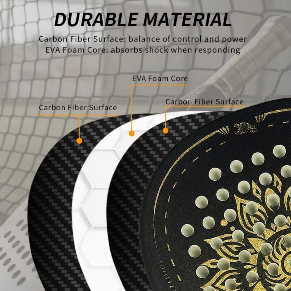 ไม้พายปาเดลคาร์บอนไดมอนด์ 3K น้ำหนักเบา คุณภาพสูง ดีไซน์ใหม่ แกน EVA ทำมือ ตาข่ายไนลอน ปรับแต่งได้ ผลิตในปากีสถาน