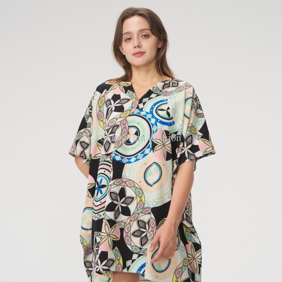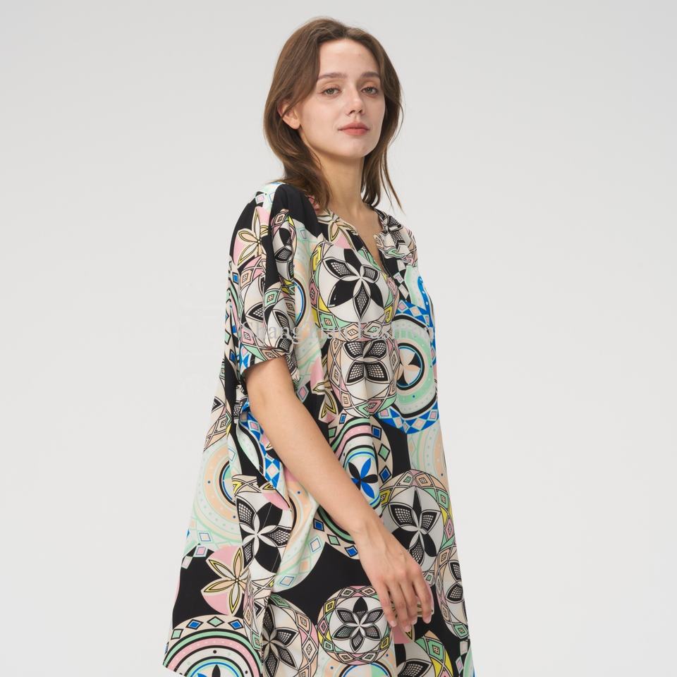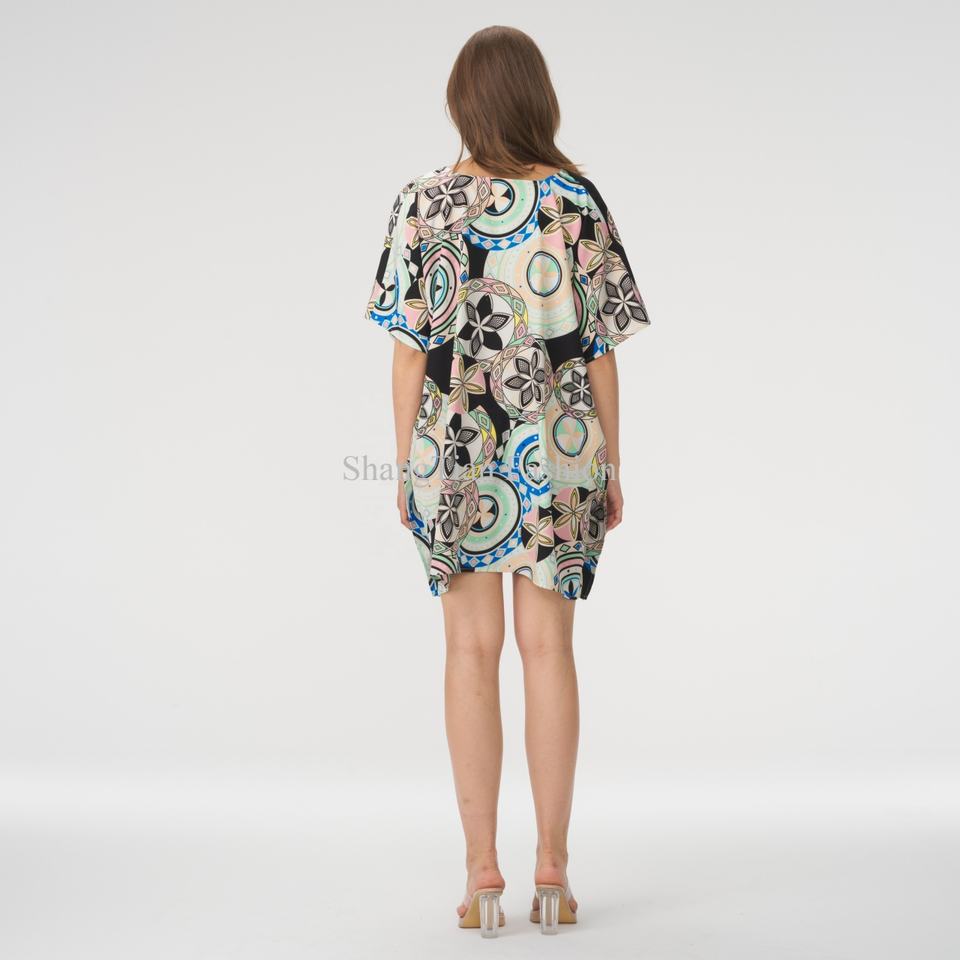 ชุดเดรสฮาวายฤดูร้อนดีไซน์ใหม่คุณภาพสูงสำหรับผู้หญิง แขนสั้นเซ็กซี่ กระชับเอว ลายพิมพ์ชายหาด ชุดมินิเดรสสไตล์ Aloha สำหรับผู้หญิง